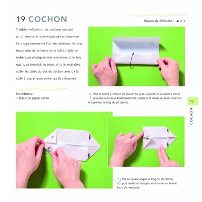 - Recréer une ferme entière grâce aux pliages en origami, c’est désormais possible ! - Au fil des saisons, les animaux, les légumes du potager et les bâtiments vont enfin prendre vie sous les mains de vos enfants. Le matériel essentiel – les feuilles d’origami - est fourni dans le livre. On le complète avec uniquement de la colle et des ciseaux. - Toutes les techniques de base de l’origami sont expliquées simplement et illustrées pour une meilleure compréhension en début d’ouvrage.