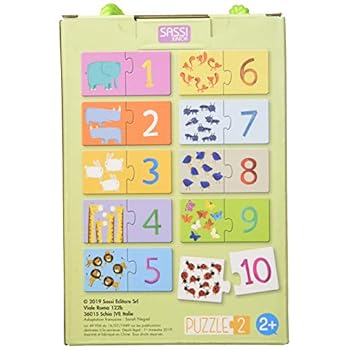 Apprends à compter de 1 à 10 grâce à ce Puzzle 2. Dans la boîte, un livre cartonné avec des illustrations aux couleurs vives et un texte facile en rime accompagnent le jeu, adapté aux plus petits. Un jeu éducatif pour apprendre à compter de 1 à 10. Une histoire en rime amusante et facile pour rendre l'apprentissage plus intéressant. Des illustrations drôles et aux couleurs vives pour capturer l'attention des plus petits.